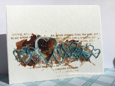Using stamping, glitter, heat embossing, splash watercolour, fiber leaf
